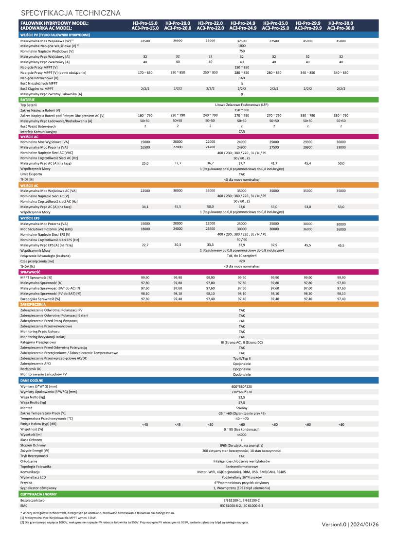 Falownik trójfazowy H3 Pro firmy Fox ESS to kompleksowe i zaawansowane rozwiązanie dla systemów fotowoltaicznych, oferujące wysoką wydajność, wszechstronność i niezawodność. Dzięki możliwości rozbudowy magazynu energii, zdalnemu monitorowaniu i solidnej konstrukcji, stanowi doskonały wybór dla osób poszukujących efektywnego sposobu na wykorzystanie energii słonecznej i zwiększenie niezależności energetycznej. Jego zaawansowane funkcje zabezpieczeń zapewniają bezpieczną i długotrwałą pracę całej instalacji fotowoltaicznej, chroniąc zarówno falownik, jak i pozostałe elementy systemu. Niezależnie od tego, czy jesteś właścicielem domu, firmy, czy instalatorem, falownik H3 Pro oferuje korzyści, które przekładają się na oszczędności, komfort i zrównoważony rozwój.