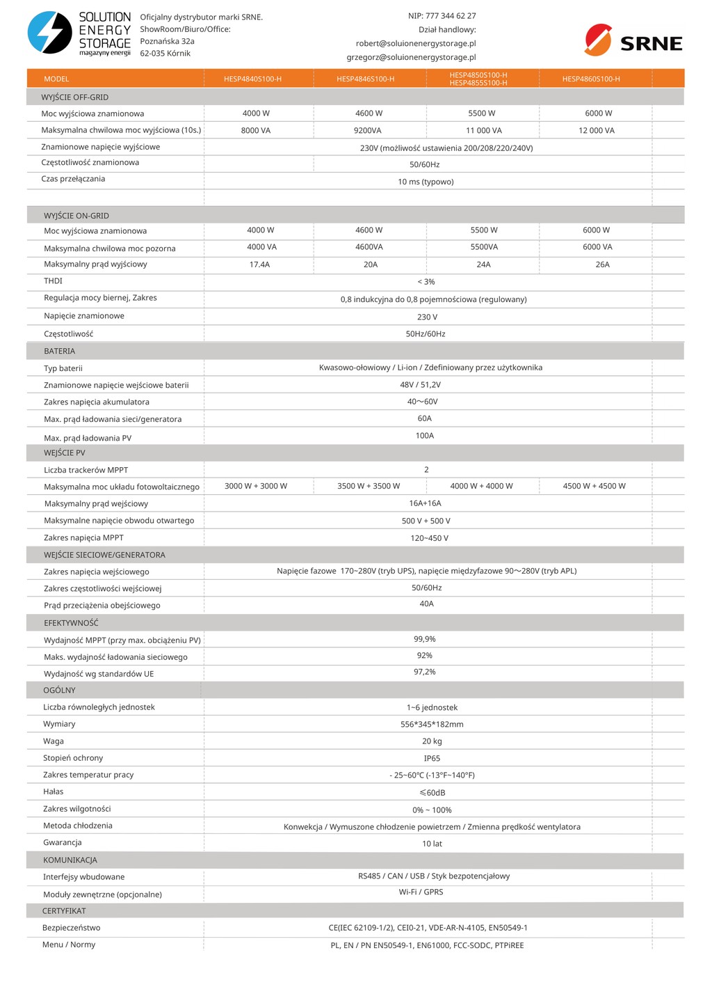 Dane na podstawie specyfikacji SRNE oraz materiałów ze strony srneinwerter.pl.