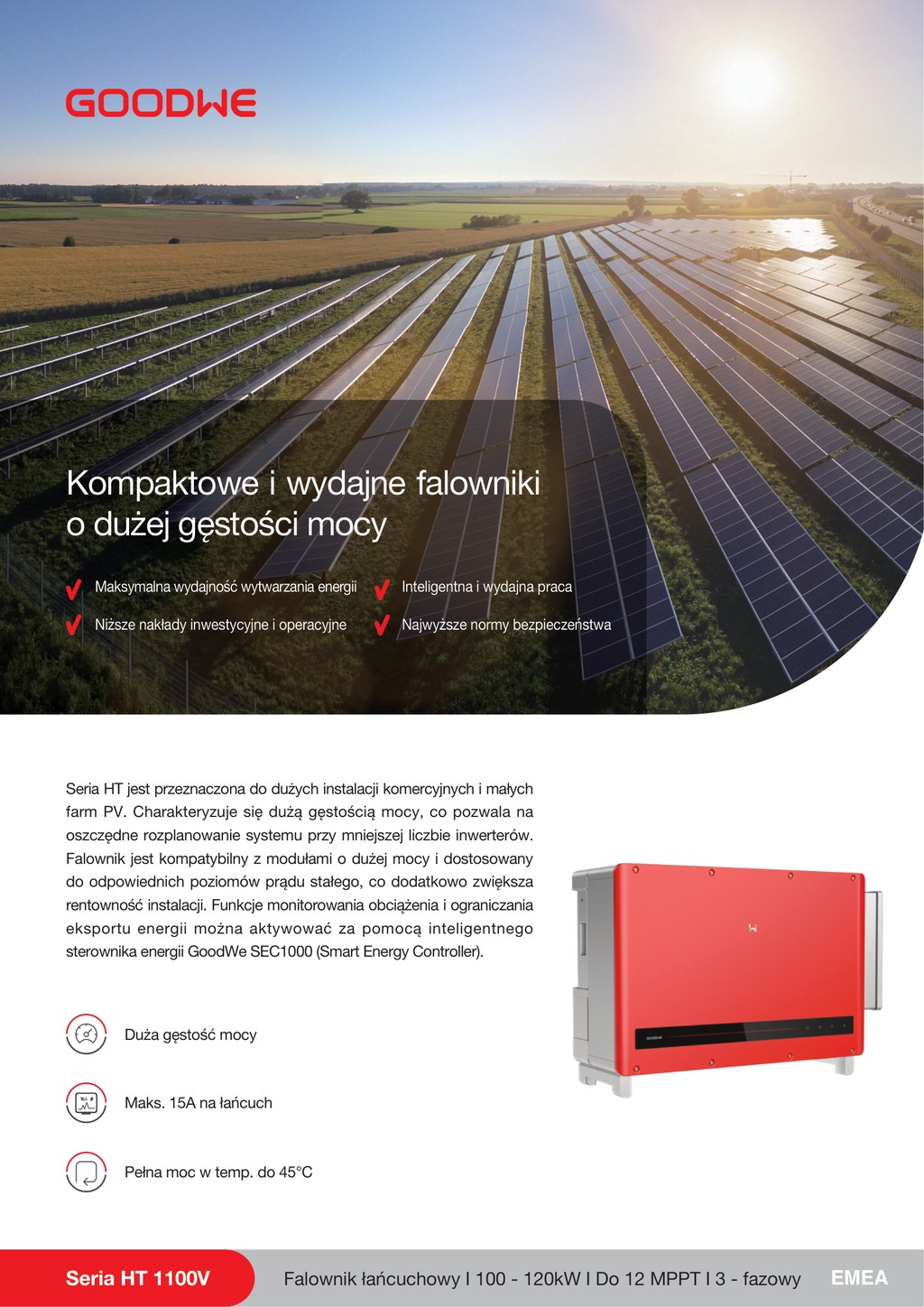 • Bardzo wysoka moc znamionowa 100 kW dla dużych instalacji PV.