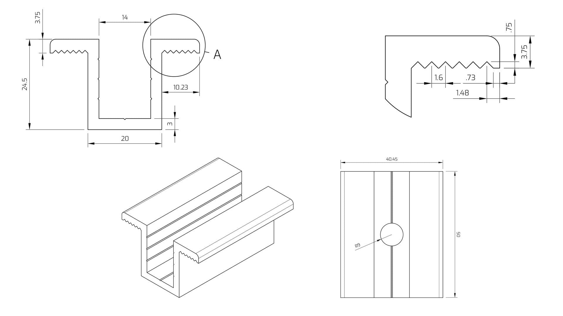 Element umożliwiający przymocowanie modułu fotowoltaicznego do profilu aluminiowego. Producent - Invendo Solar