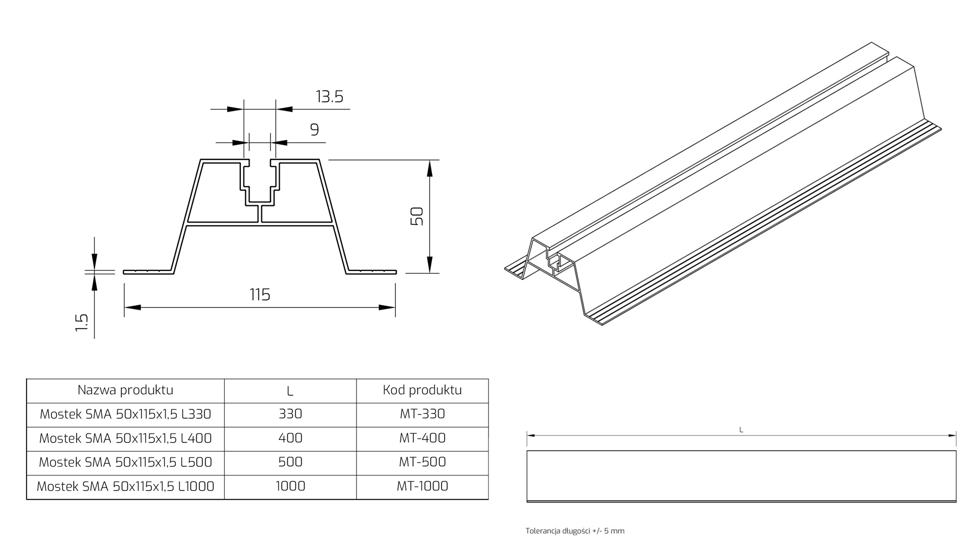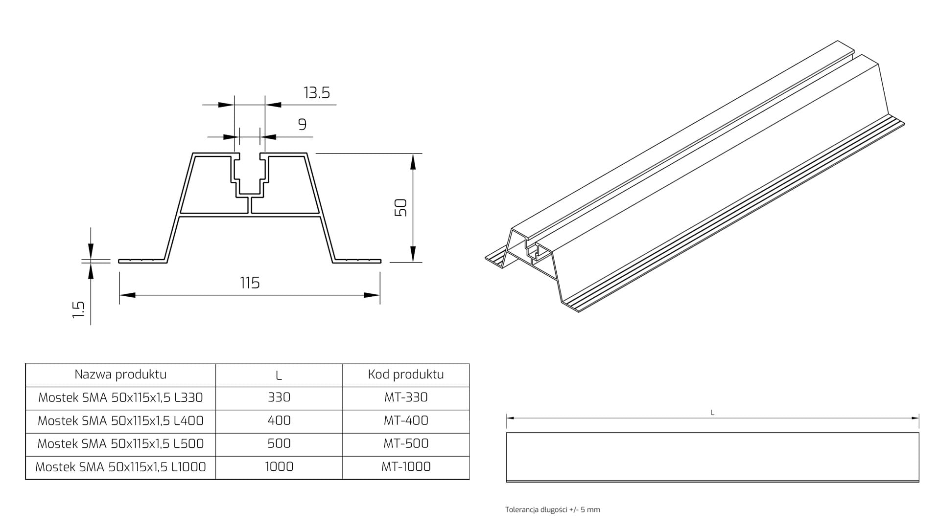 MT-POCH-74-400- Mostek SMA POCHYLONY 74x115x1,5 L400