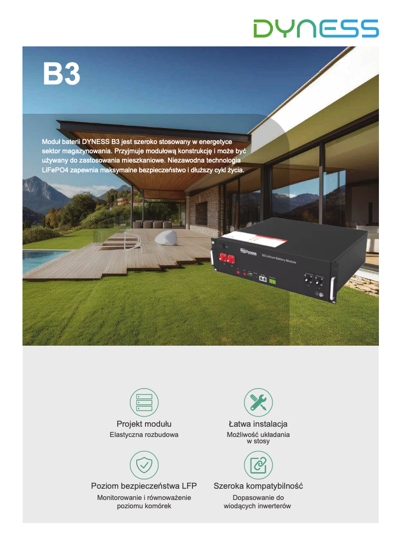 Dyness B3 to solidne rozwiązanie dla domowych systemów magazynowania energii, oferujące łatwą instalację i elastyczność konfiguracji.