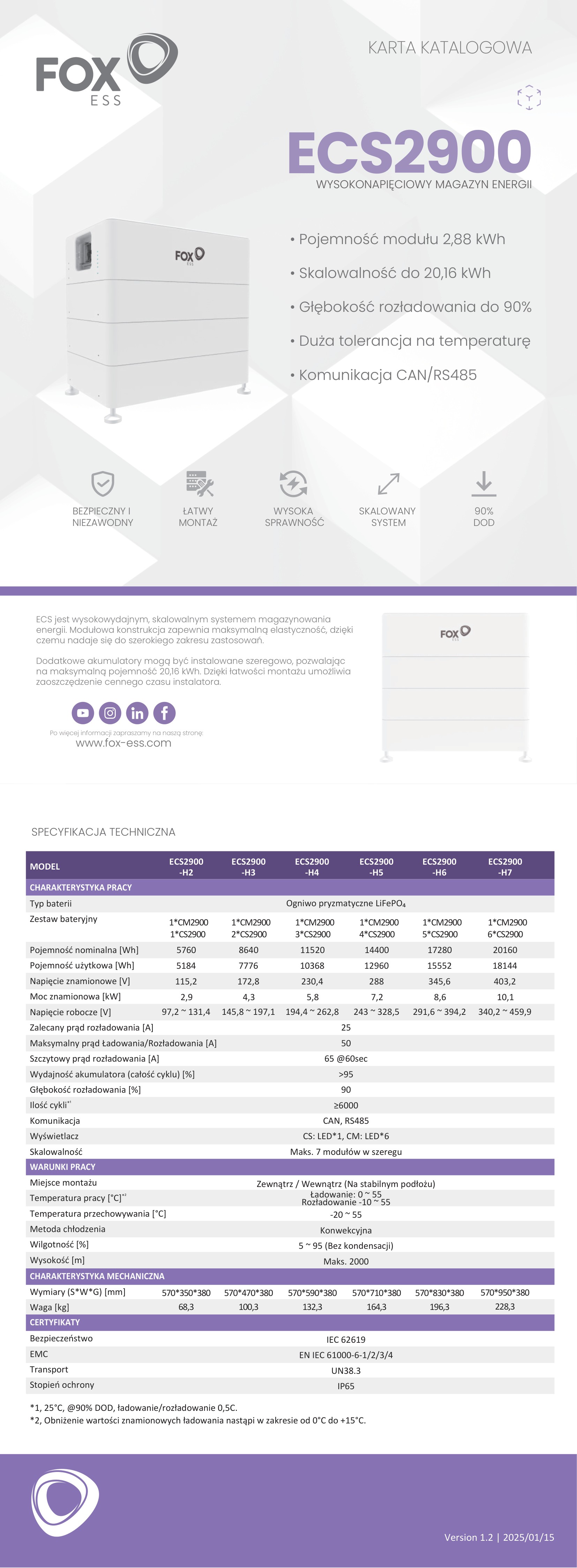 • Technologia LFP — wysoki poziom bezpieczeństwa i długa żywotność cykliczna.