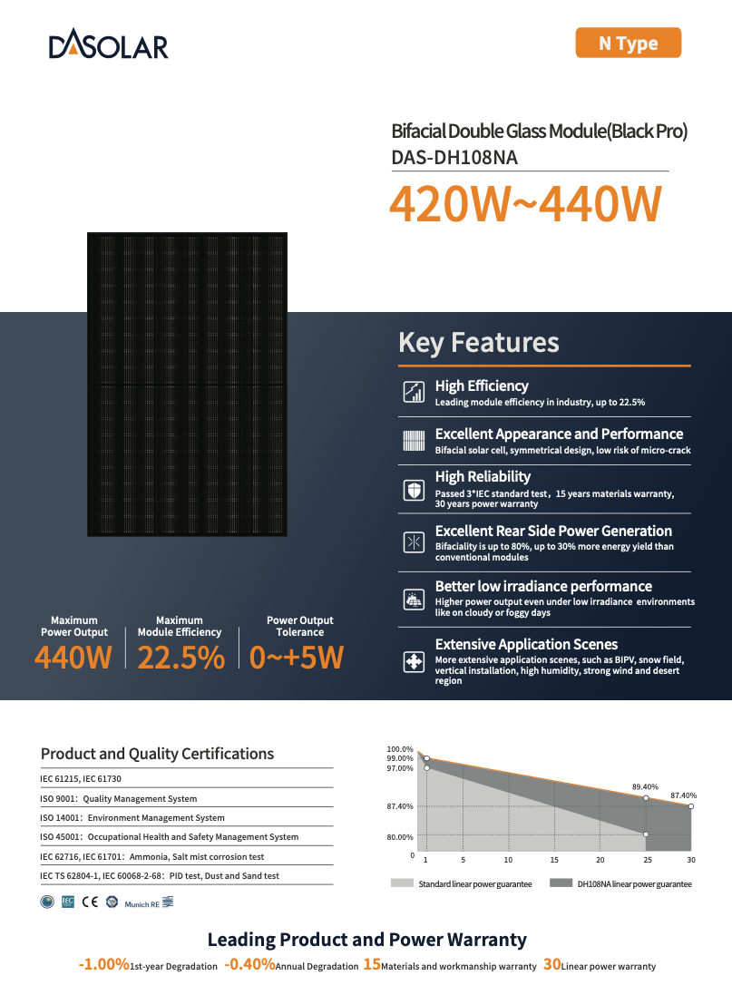 Panel fotowoltaiczny DAS Solar 420W DAS-DH108NA-420B FB