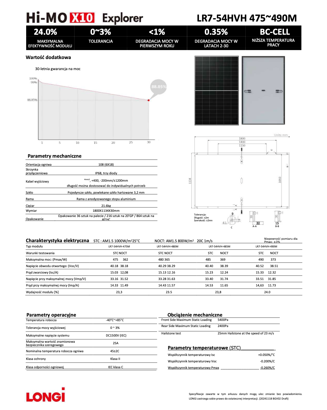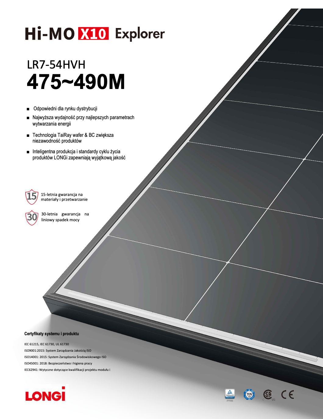 LONGi 475–490W to panel solarny nowej generacji, który łączy najwyższą wydajność, długowieczność i odporność na trudne warunki środowiskowe. Dzięki zaawansowanej technologii produkcji i rygorystycznym standardom jakości, stanowi idealny wybór dla osób poszukujących niezawodnego i opłacalnego źródła energii. To inwestycja, która przynosi realne korzyści przez dekady.