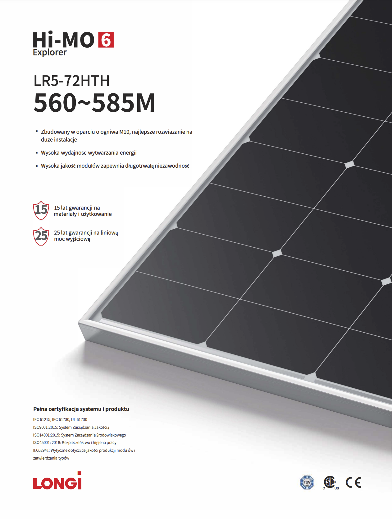 LONGi Solar jest wiodącym dostawcą wysokiej sprawności modułów fotowoltaicznych. Zajmuje czołowe pozycje w prestiżowym zestawieniu TIER 1, które obejmuje najstabilniejszych i najbardziej godnych zaufania wytwórców paneli PV. Producent od ponad 20 lat skupia się na technologii monokrystalicznej co uczyniło go na rynku specjalistą  monokrystalicznych ogniw krzemowych. Panele słoneczne LONGi Solar, w tym moduł fotowoltaiczny Longi LR5-72HTH-580M SF,  szczególnie ceni się za wysoką i potwierdzoną licznymi testami jakość przy zachowaniu stosunkowo niskich cen.