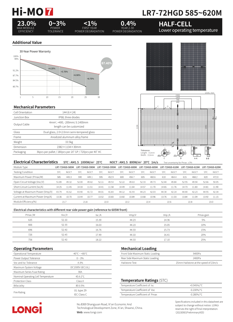 Panel fotowoltaiczny Longi LR7-72HGD-595M Hi-MO7 SF cechują: