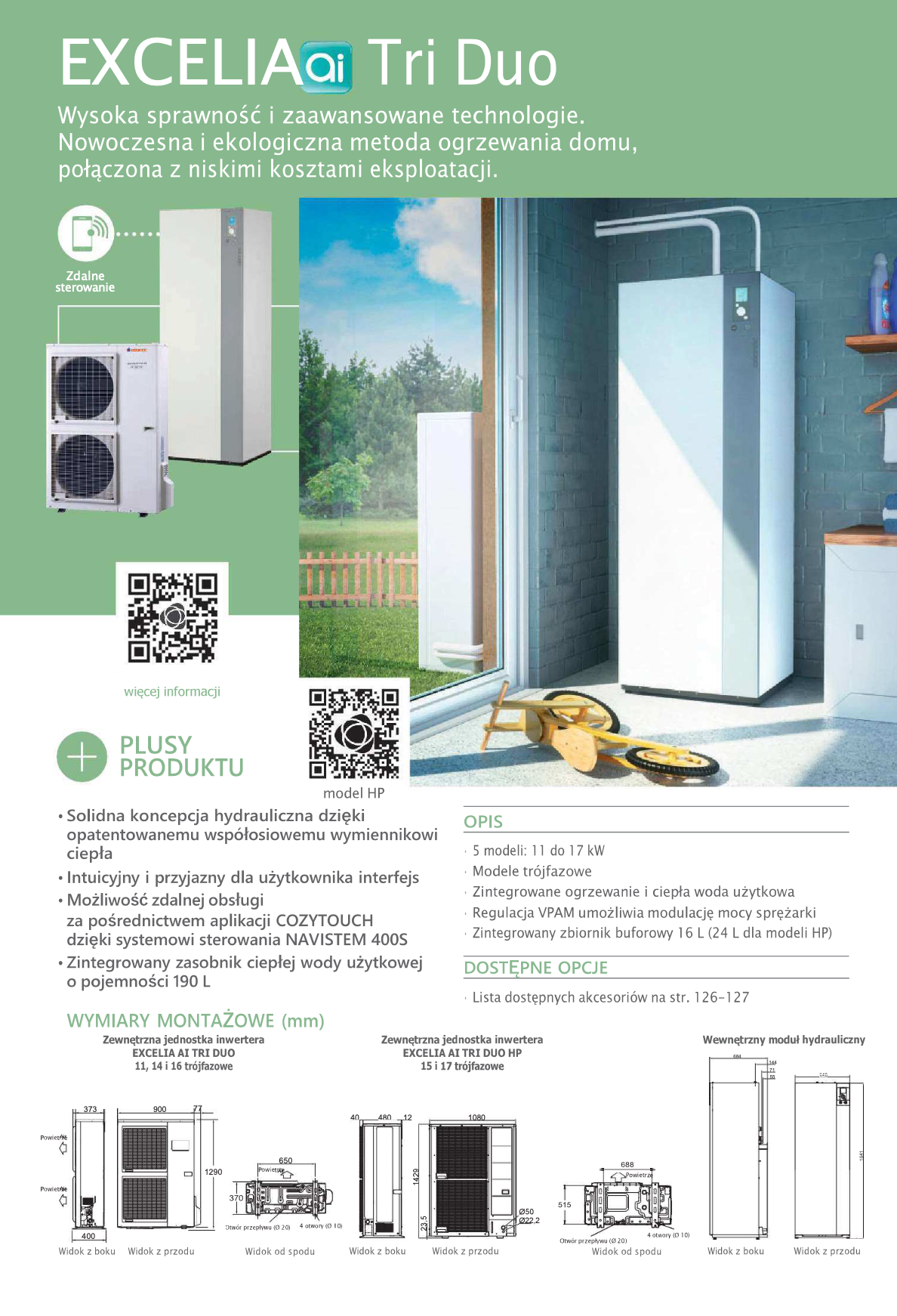 Wysoka sprawność i zaawansowane technologie, oraz wbudowany zbiornik c.w.u. o pojemności 190 litrów, zamknięte w kompaktowej obudowie.