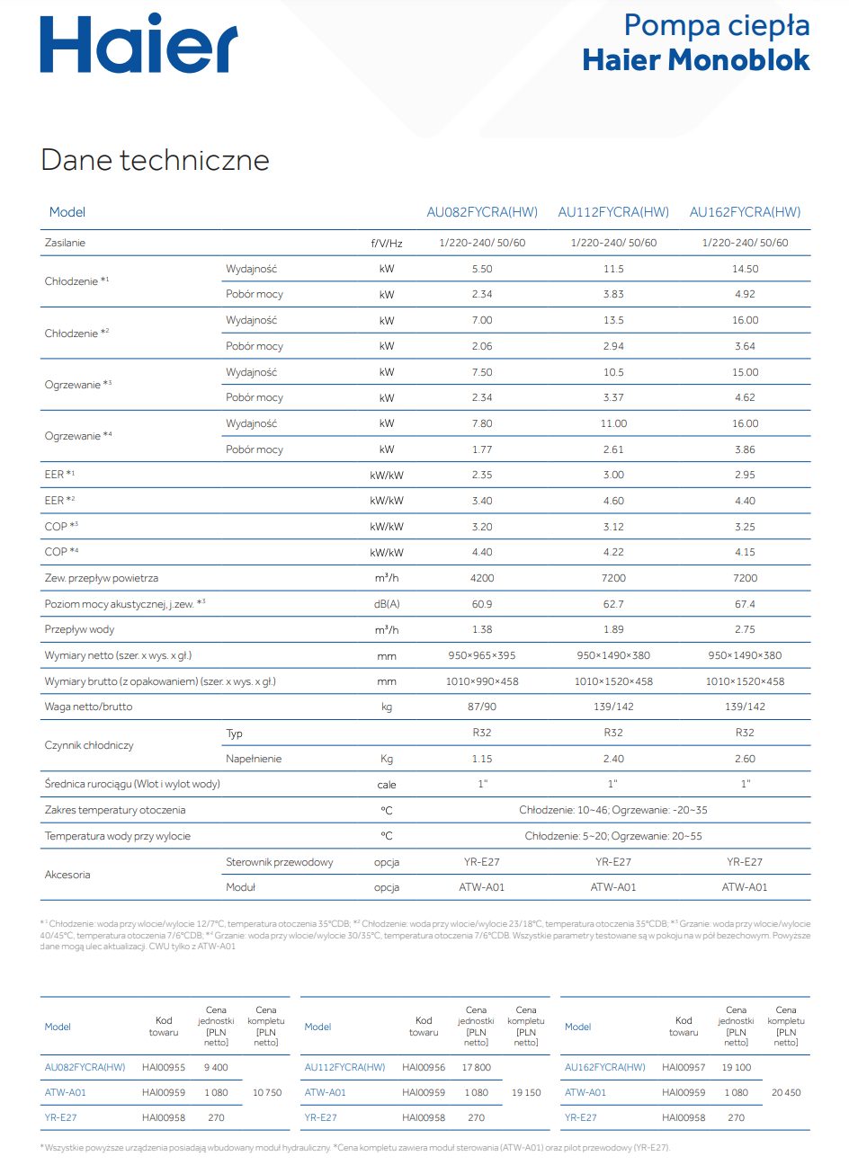 Pompa ciepła Haier AU162FYCRA(HW) Monoblok - 16kW