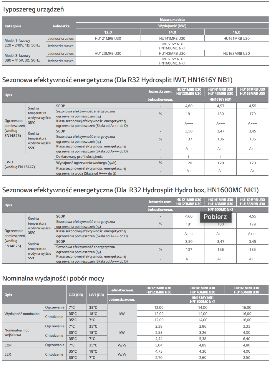 Pompa ciepła LG Hydrosplit 16kW 1F