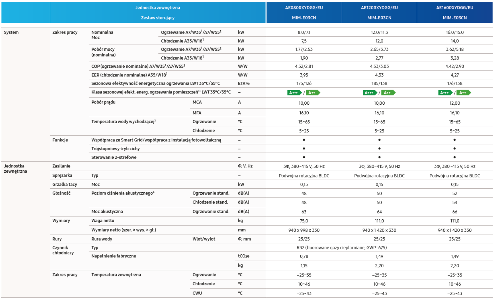 Pompa ciepła monoblok Samsung AE160RXYDGG/EU 16kW 3F