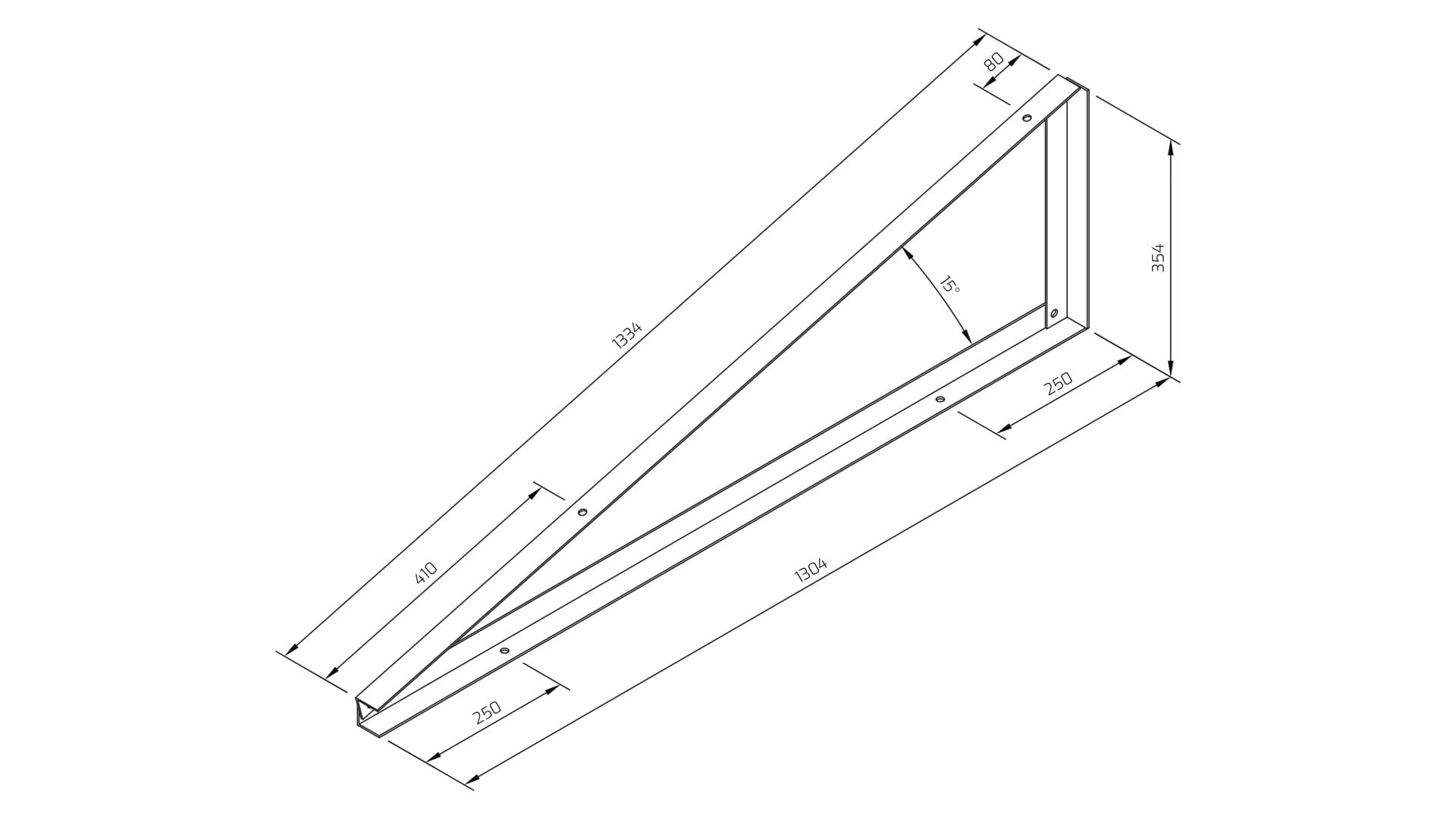Trójkąt montażowy do konstrukcji inwazyjnej. W ułożeniu paneli pionowym. O kącie nachylenia 15 stopni.