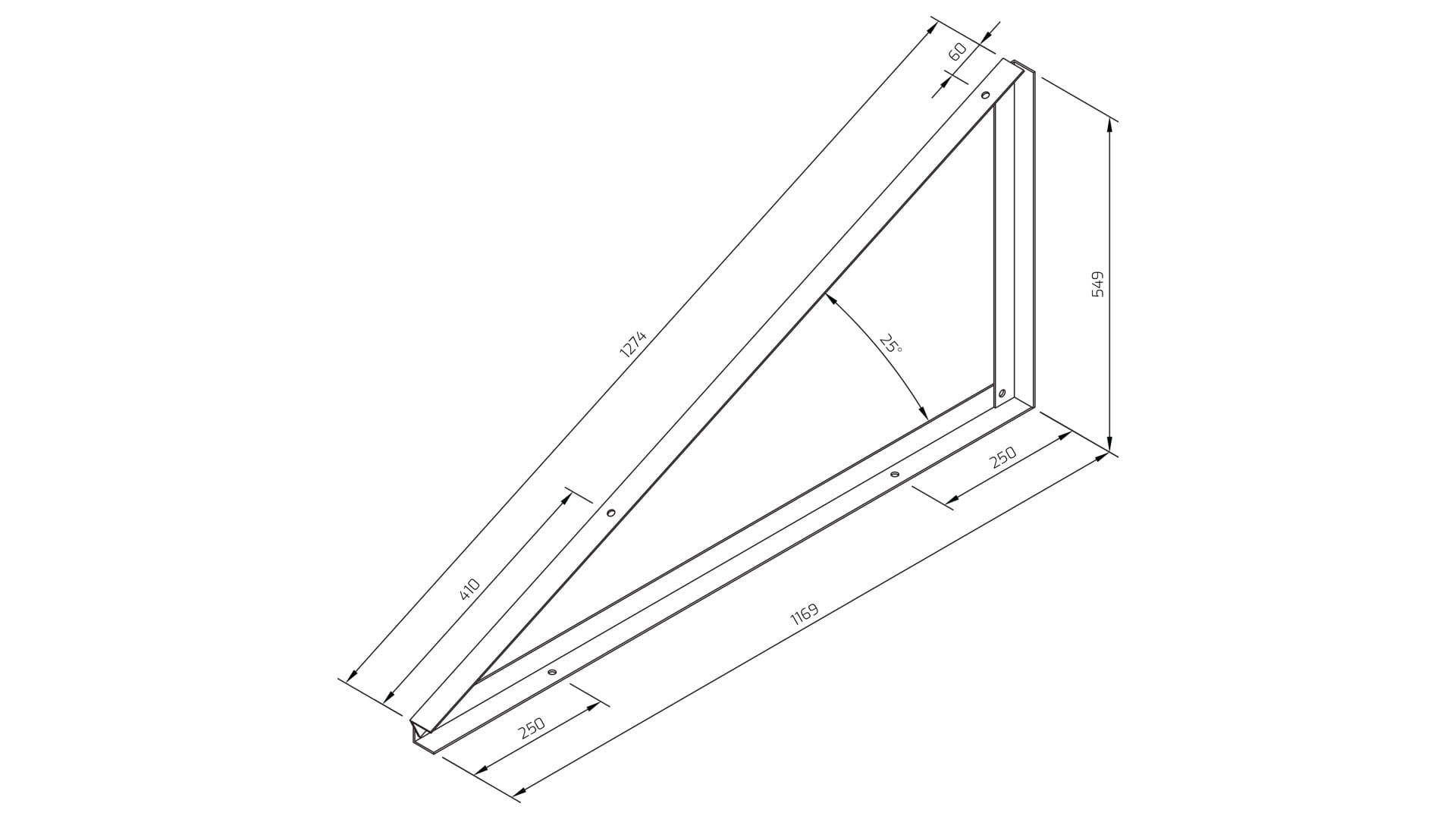 Trójkąt montażowy do konstrukcji inwazyjnej. W ułożeniu paneli pionowym. O kącie nachylenia25 stopni.