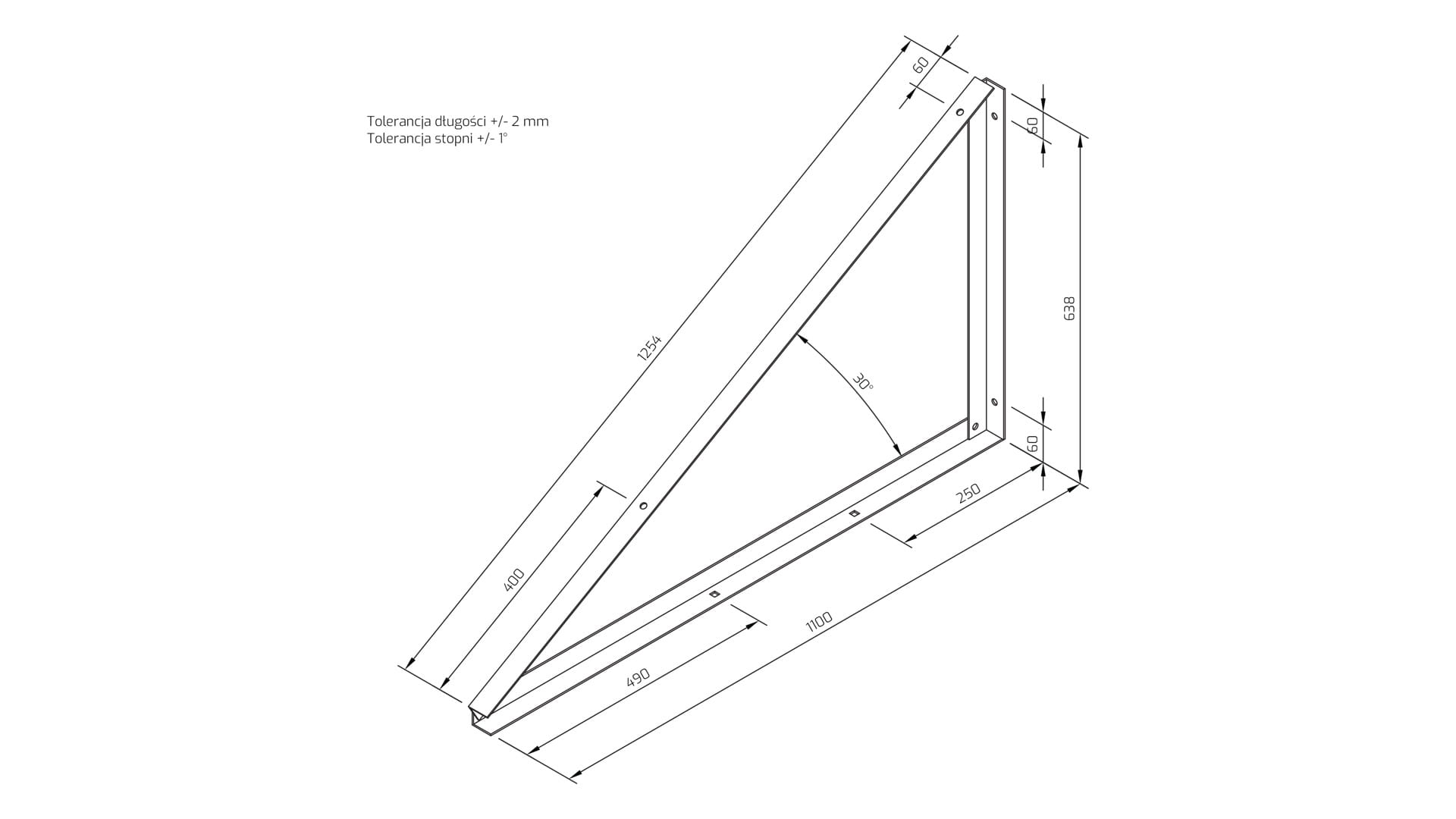 Trójkąt montażowy do konstrukcji bezinwazyjnej (balastowej). W ułożeniu paneli pionowym. O kącie nachylenia 30 stopni.