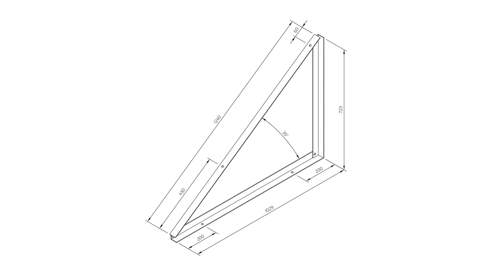 Trójkąt montażowy do konstrukcji inwazyjnej. W ułożeniu paneli pionowym. O kącie nachylenia 35 stopni.