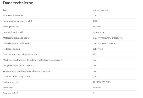 Zbiornik buforowy TRINNITY TRGPWBW100 100L C.O - Wiszący